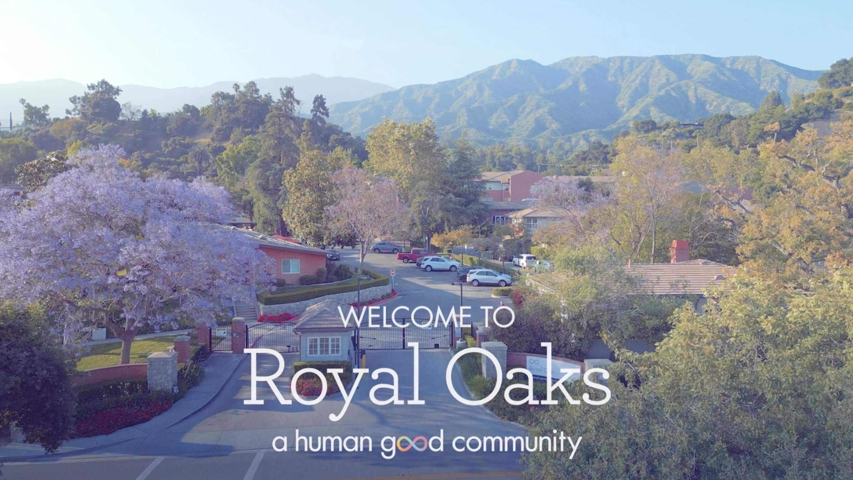 Video displaying scenes from Royal Oaks, a HumanGood Life Plan Community in Bradbury, California